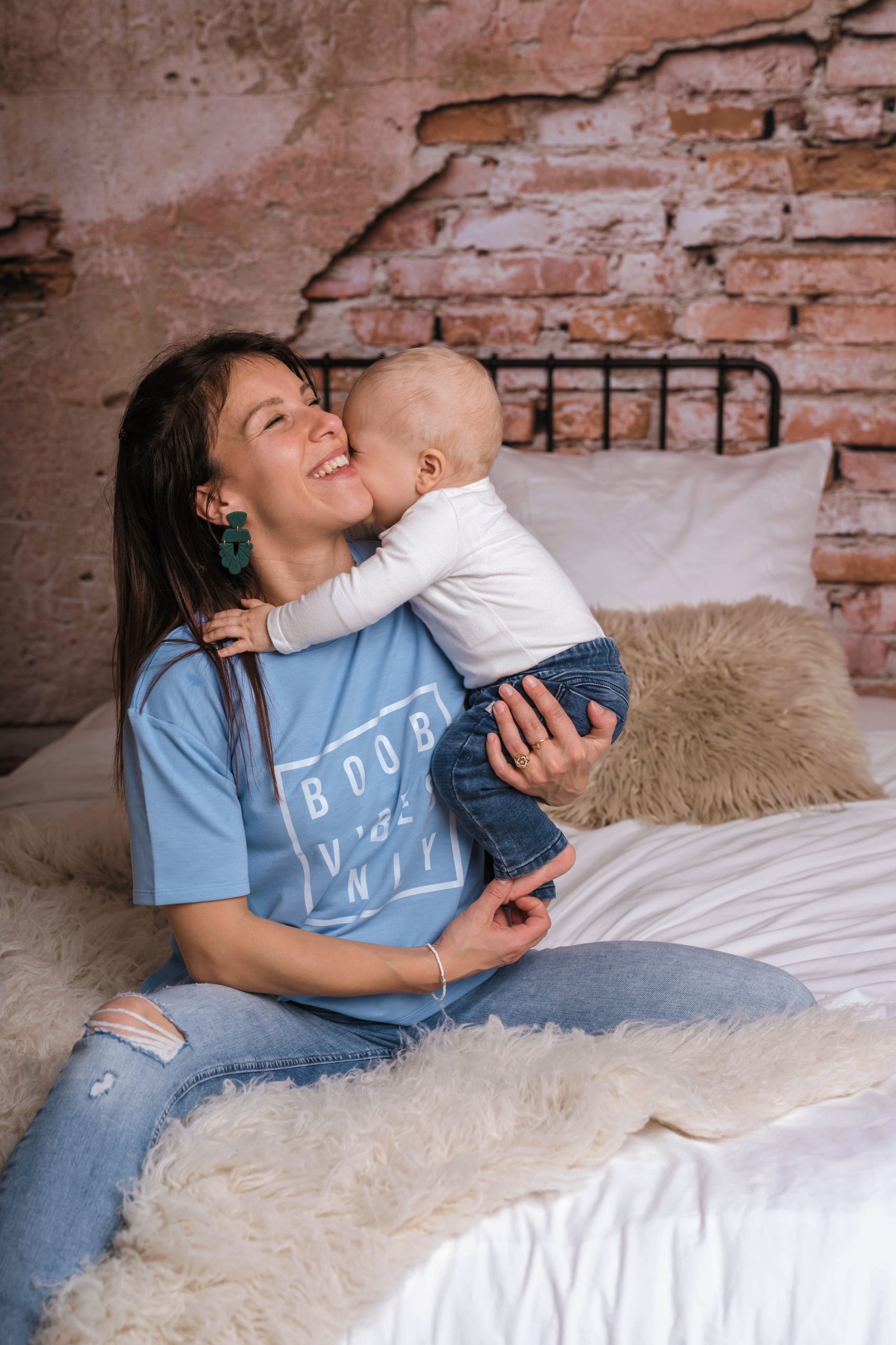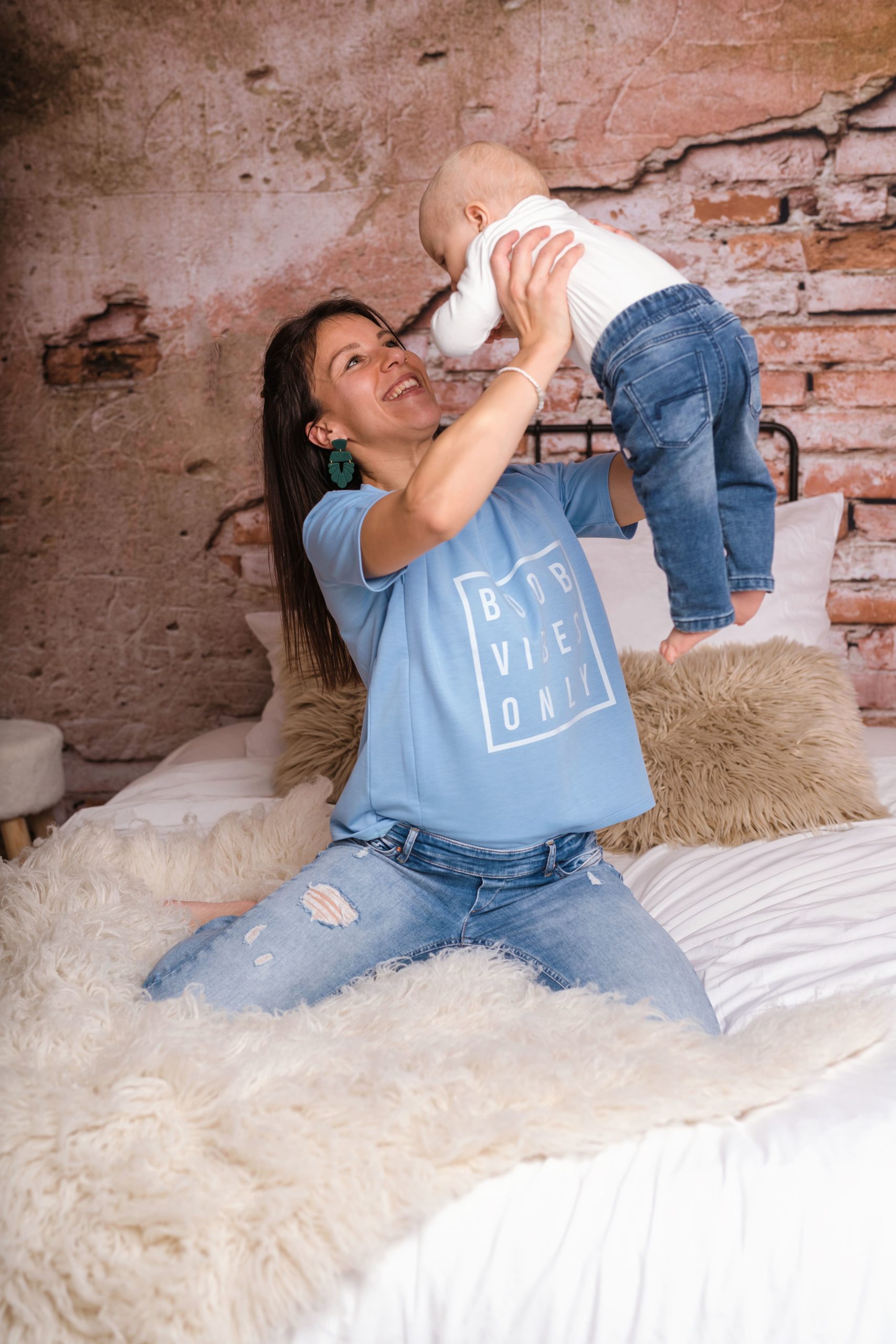 Le t-shirt BOOB VIBES ONLY bleu ciel (existe également en blanc) est un t-shirt d’allaitement au message fun sur le thème de l’allaitement.
